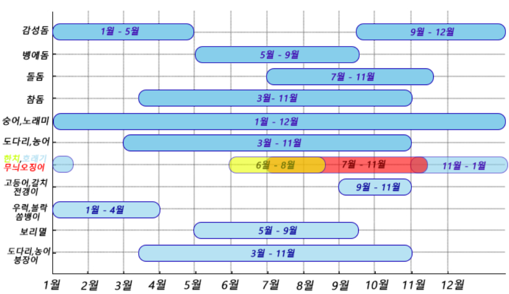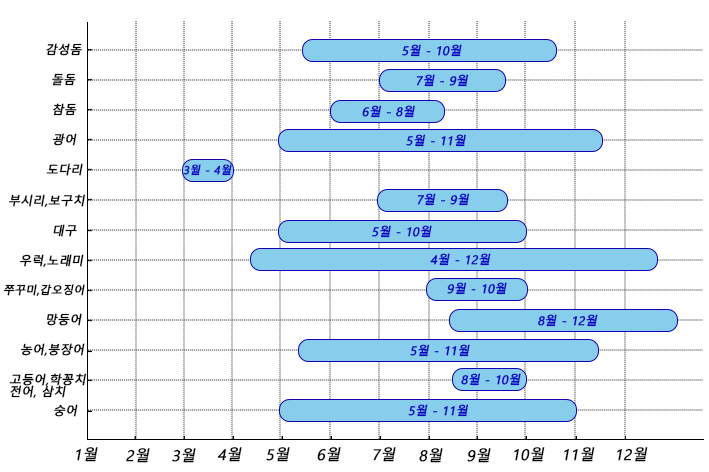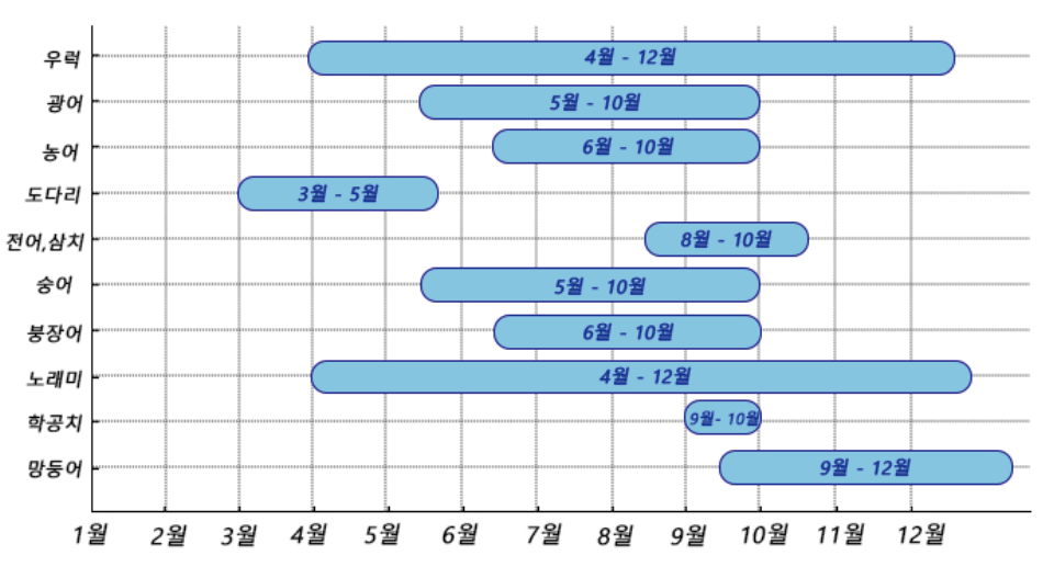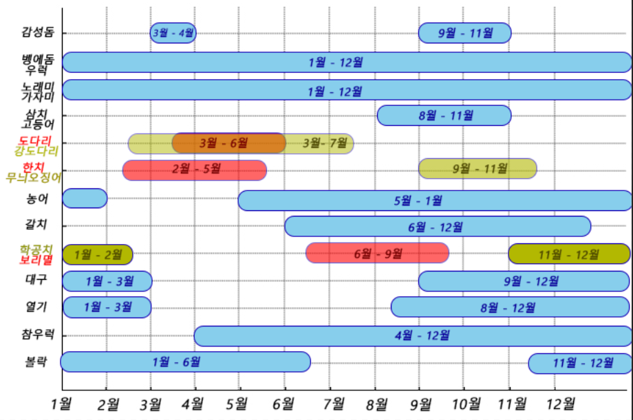 낚시 물 때 총 정리와 지역,시즌 대상어종