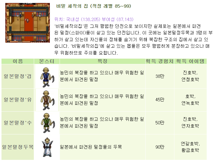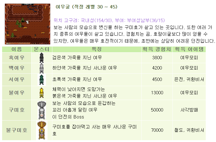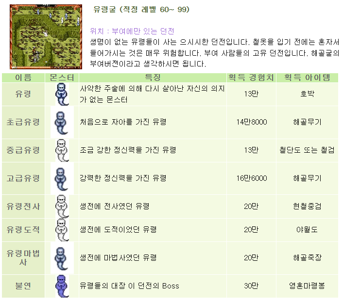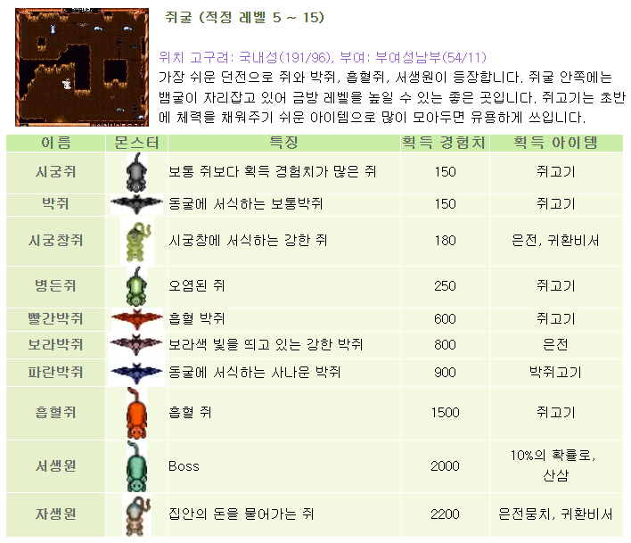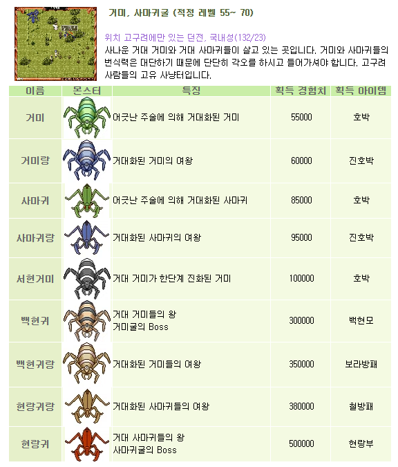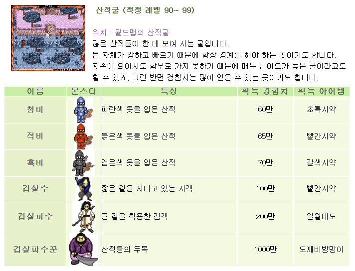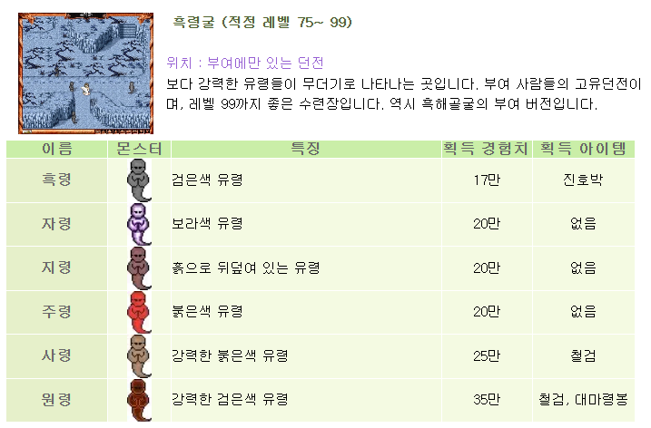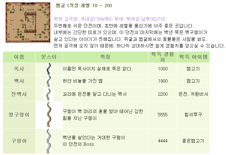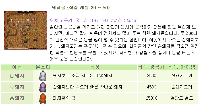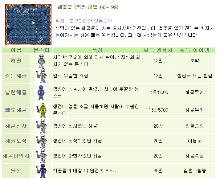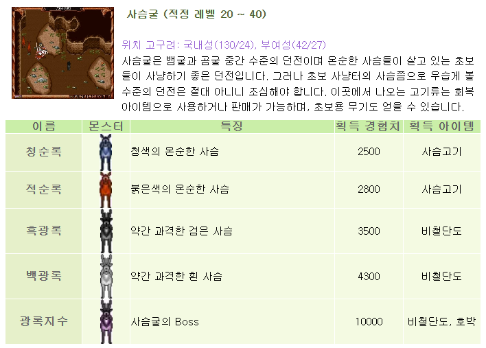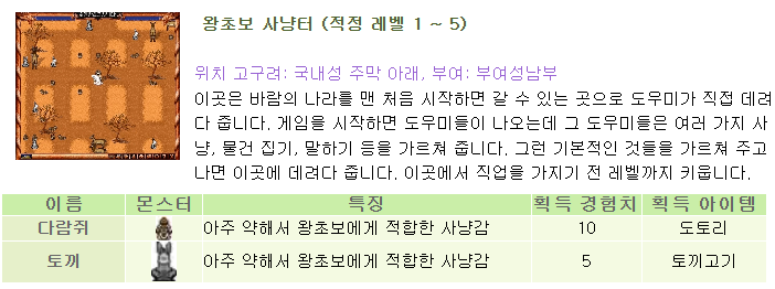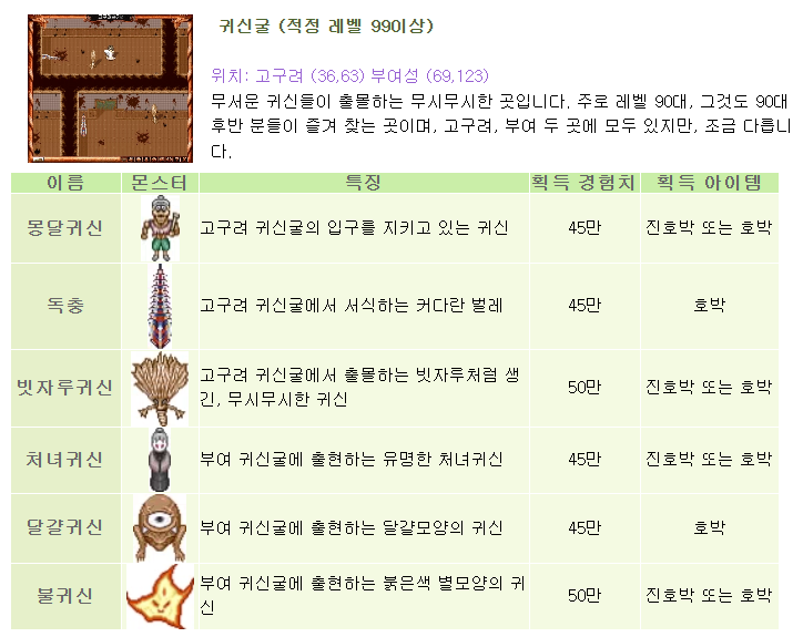 바람의 나라 클래식 초급 중급 고급 레벨별 사냥터 총정리(1-99)